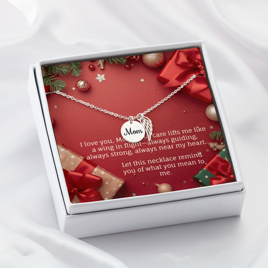 "For Mom – Winged Circle Pendant" for Christmas gift