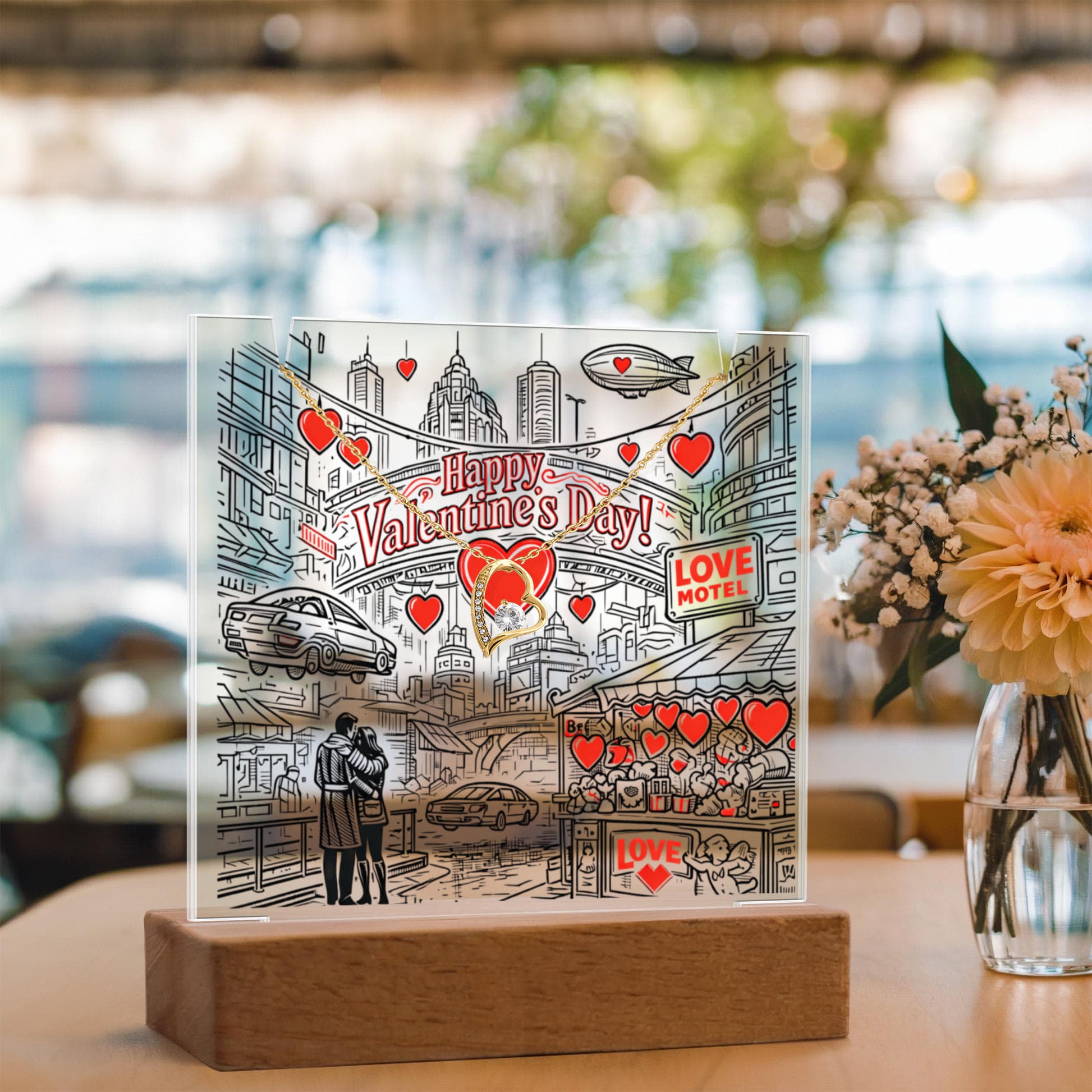 Futuristic Valentine. Love is in the Cyber City. Lights up and displays a Gorgeous necklace.