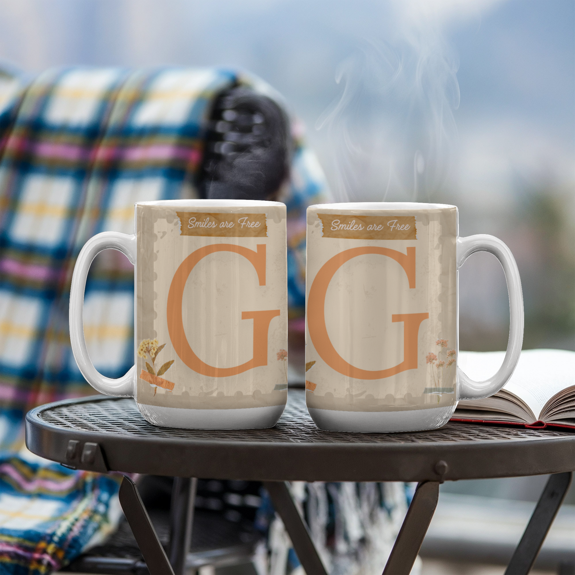 Letter G : Large Initial Mug - with the words "Smiles are Free"
